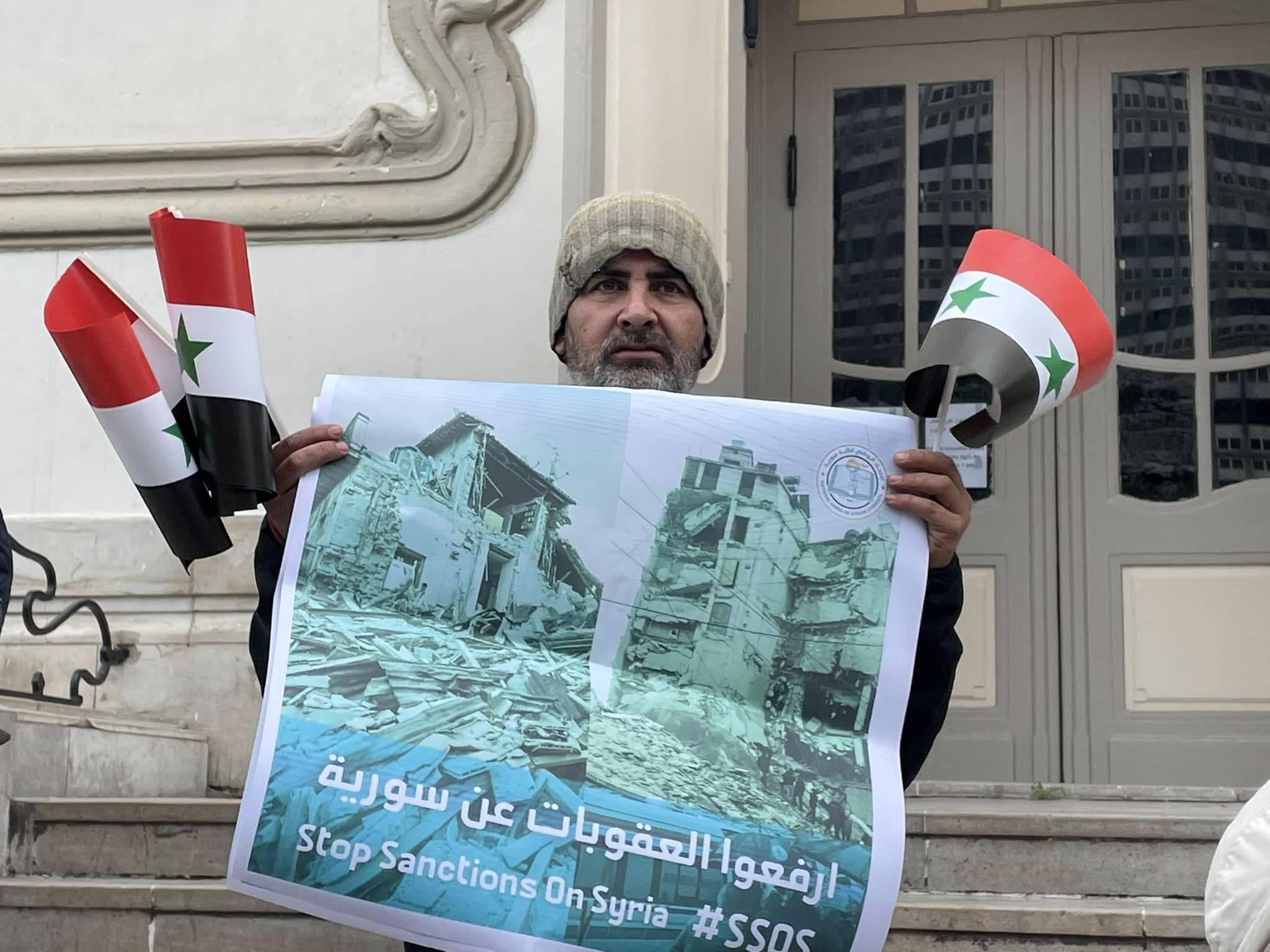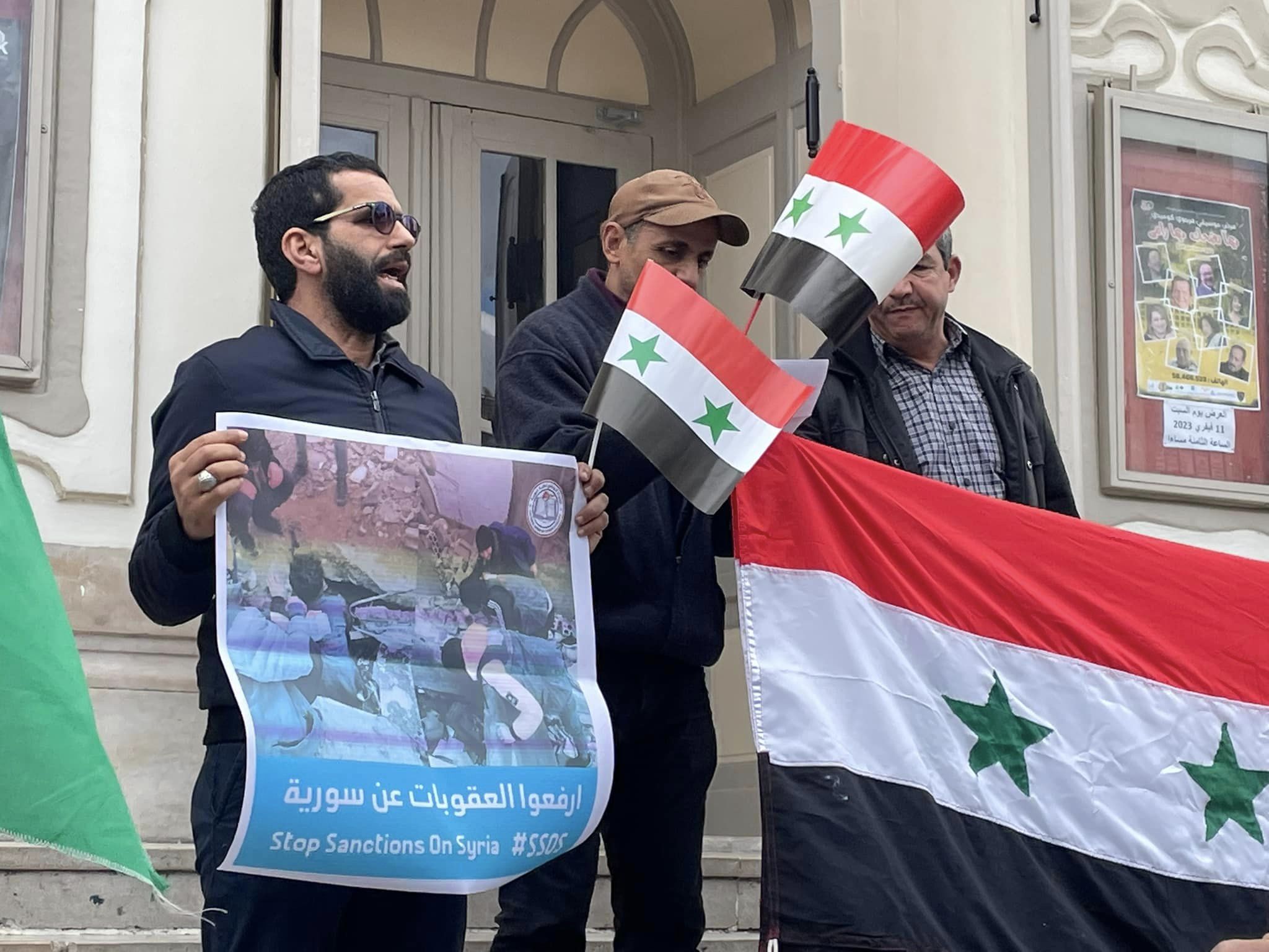 طالب عضو التنسيقية الوطنية لكسر الحصار عن سوريا صلاح المصري ،خلال وقفة تضامنية مع الشعب السوري بشارع الحبيب بورقيبة العاصمة، اليوم الخميس 9 فيفري 2023، رئيس الجمهورية ،قيس سعيد، بإعادة العلاقات مع سوريا لتسهيل إدخال المساعدات إلى المدن المتضررة من الزلزال.