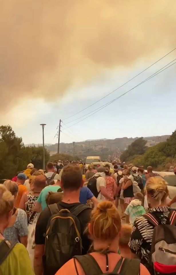 وحيث قطعت الحرائق الطريق، اضطر بعض السياح إلى السير إلى بر الأمان.