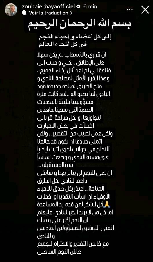 وفي رسالة قال بية: "حبي للنجم الساحلي لن يتأثر بكل هذا، سأبقى داعمًا للنادي بكل الطرق الممكنة. أعتذر للجماهير الوفية إن أسأت التقدير أو أخطأت، وأشكر كل من قدم يد المساعدة. أما من لا يريد الخير للنادي فليعلم أن النجم أكبر مني ومنك. أتمنى التوفيق للمسؤولين القادمين وللنادي عموماً، وأوجه خالص التقدير والاحترام للجميع. عاش النجم الساحلي!"