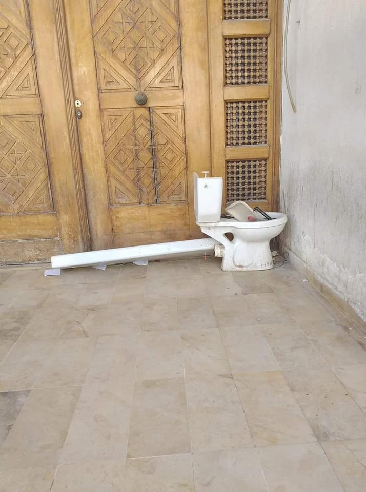 تداول رواد مواقع التواصل الاجتماعي اليوم الخميس صورة لقعادة قديمة (مرحاض) متروكة بجوار الباب الرئيسي لمحكمة الإستئناف بتونس.