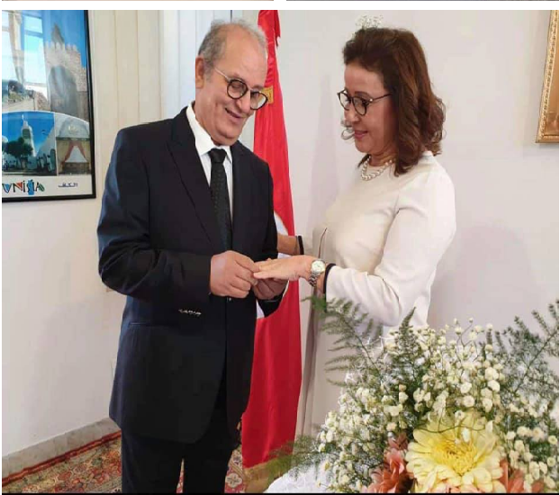 أشرف رئيس الجمهورية قيس سعيد على عقد قران للمسؤولة السابقة في اتصالات تونس سنية اللوقاني و المهندس المعماري مالك شبيل.