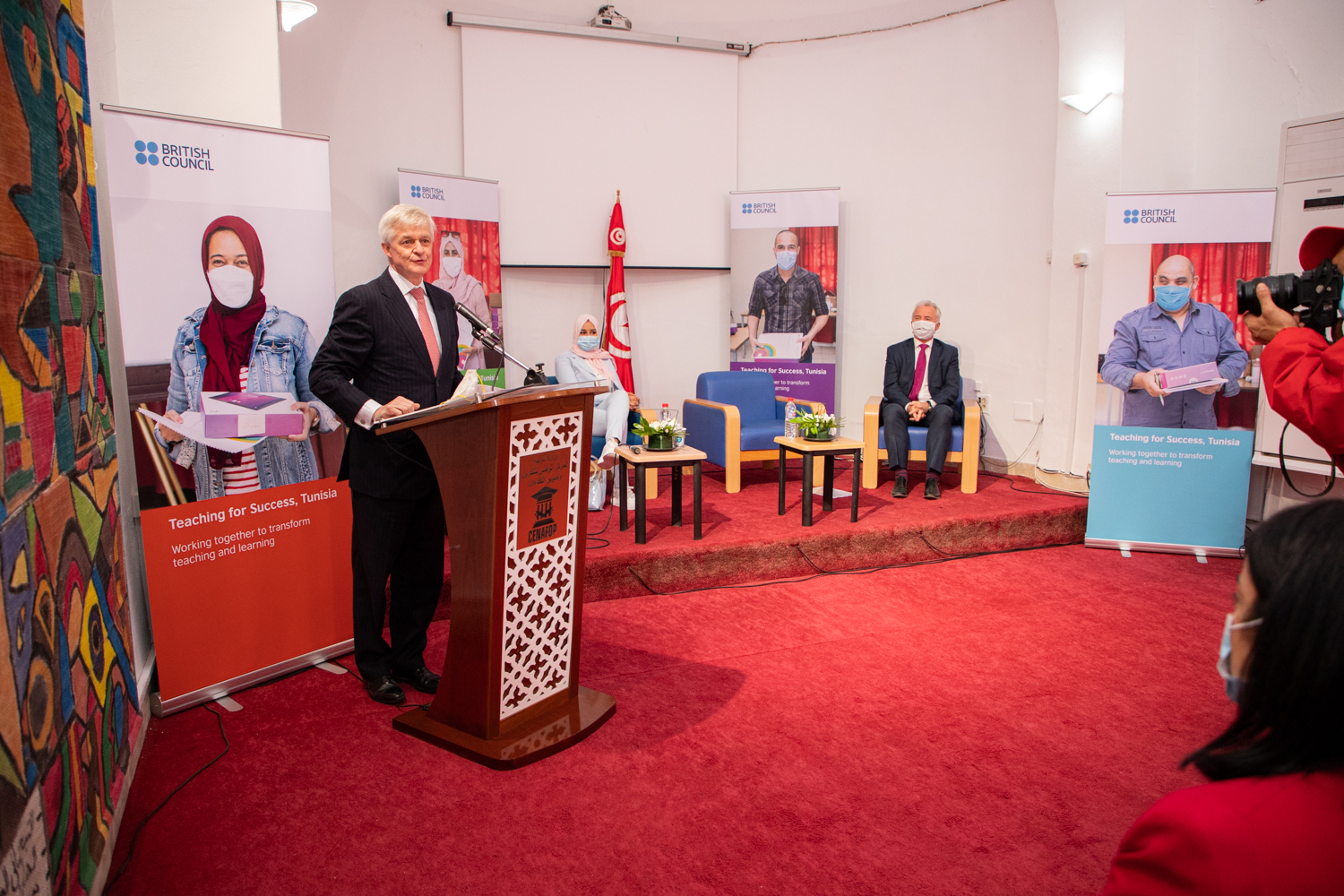 حضر الحفل وقام بتقديم الشهادات كل من السيد كمال حجام المدير العام للمركز الوطني للتكوين و تطوير الكفاءات والسيد روبرت ناس مدير المجلس الثقافي البريطاني وسفير المملكة المتحدة بتونس السيد إدوارد اوكان مصحوبا بالفائزة ببرنامج سفير اليوم التي التحقت المعلمات سابقا بدورة تكوينية عن بعد مصحوبة باختبار لصقل مهارات تدريس اللغة الإنجليزية في المدارس الإبتدائية. ويهدف المشروع إلي تكوين معلمي ومعلمات اللغة الانجليزية بالمدارس الابتدائية للسنوات الرابعة والخامسة ولاحقا السنة السادسة.