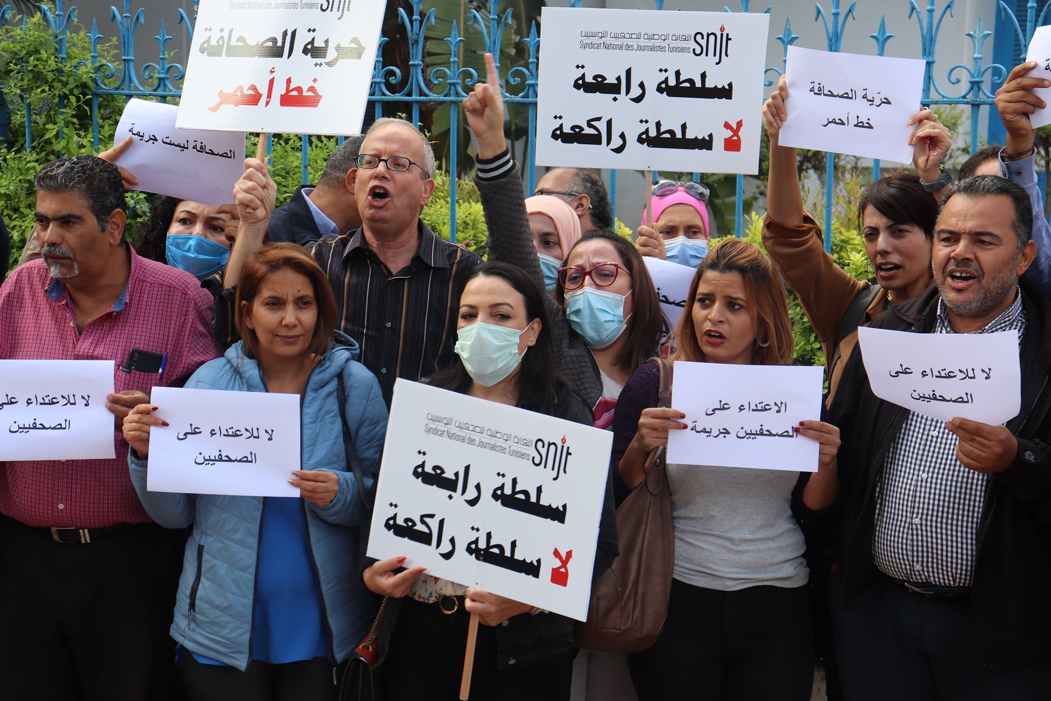 وأفاد نقيب الصحفيين مهدي الجلاصي، أن سلامة الصحفيين أصبحت في مرمى أعداء حرية التعبير خاصة بعد الاعتداء التي جد مؤخرا في حق طاقم التلفزة الوطنية في التحرك الاحتجاجي ليوم الأحد الفارط, مضيفا أن الهدف من هذه الاعتداءات هو خلق حالة خوف لديهم وجعلهم يمارسون رقابة ذاتية على أنفسهم وهو أمر غير مسموح به بتاتا.
