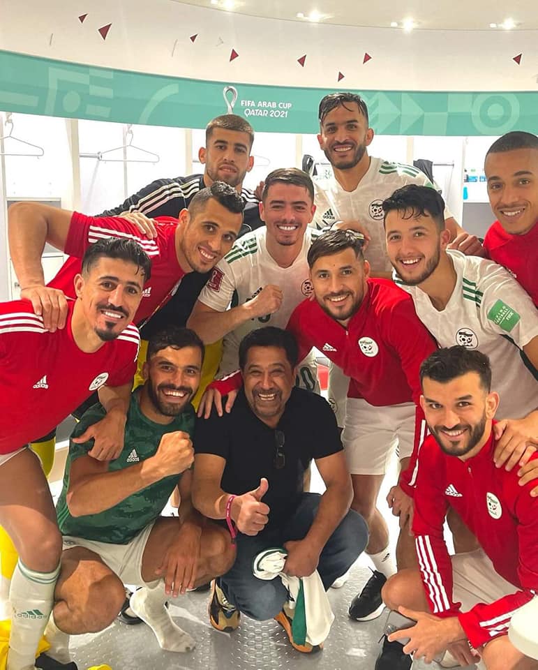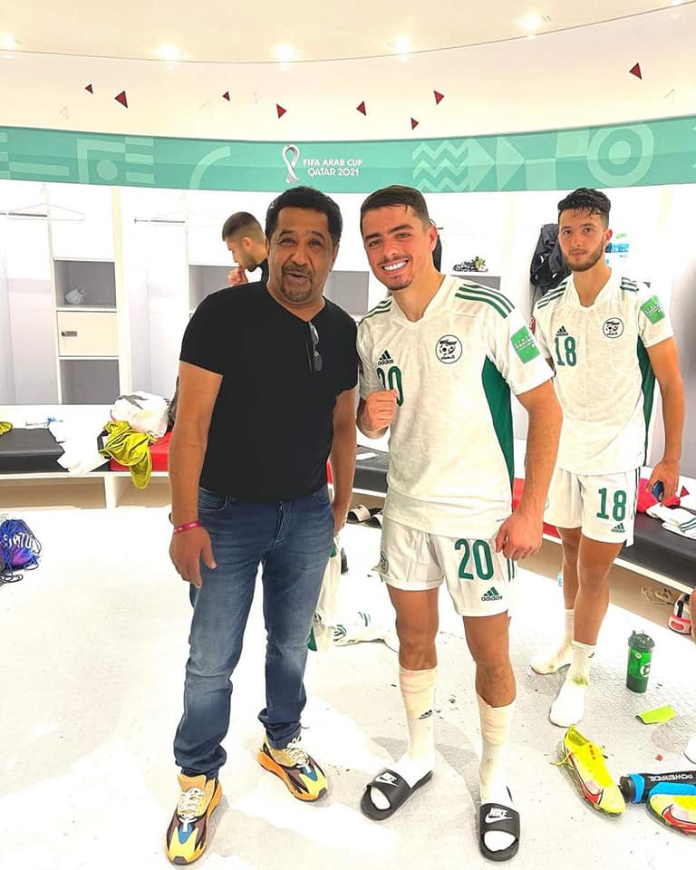 حرص النجم العالمي الشاب خالد على الاحتفال مع نجوم المنتخب الجزائري عقب الفوز على السودان بكأس العرب 4-0 ، ضمن الجولة الأولى ومستهل مشوار محاربى الصحراء فى مونديال العرب.