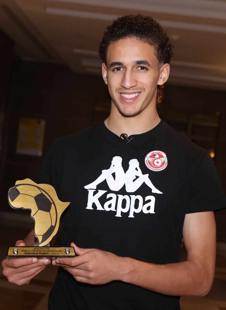 تسلم اللاعب الدولي حنبعل المجبري، لاعب مانشستر يونايتد الأنجليزي الفائز في استفتاء موقع 'foot-Africa' رمز لقب أفضل لاعب افريقي صاعد سنة 2021.