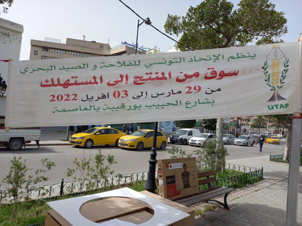 ينظم الاتحاد التونسي للفلاحة والصيد البحري "سوقا من المنتج الى المستهلك" ابتداءا من يوم الثلاثاء 29 مارس و الى غاية الاحد 3 أفريل 2022 بشارع الحبيب بورقيبة بتونس العاصمة، حسبما أعلنت عنه المنظمة.