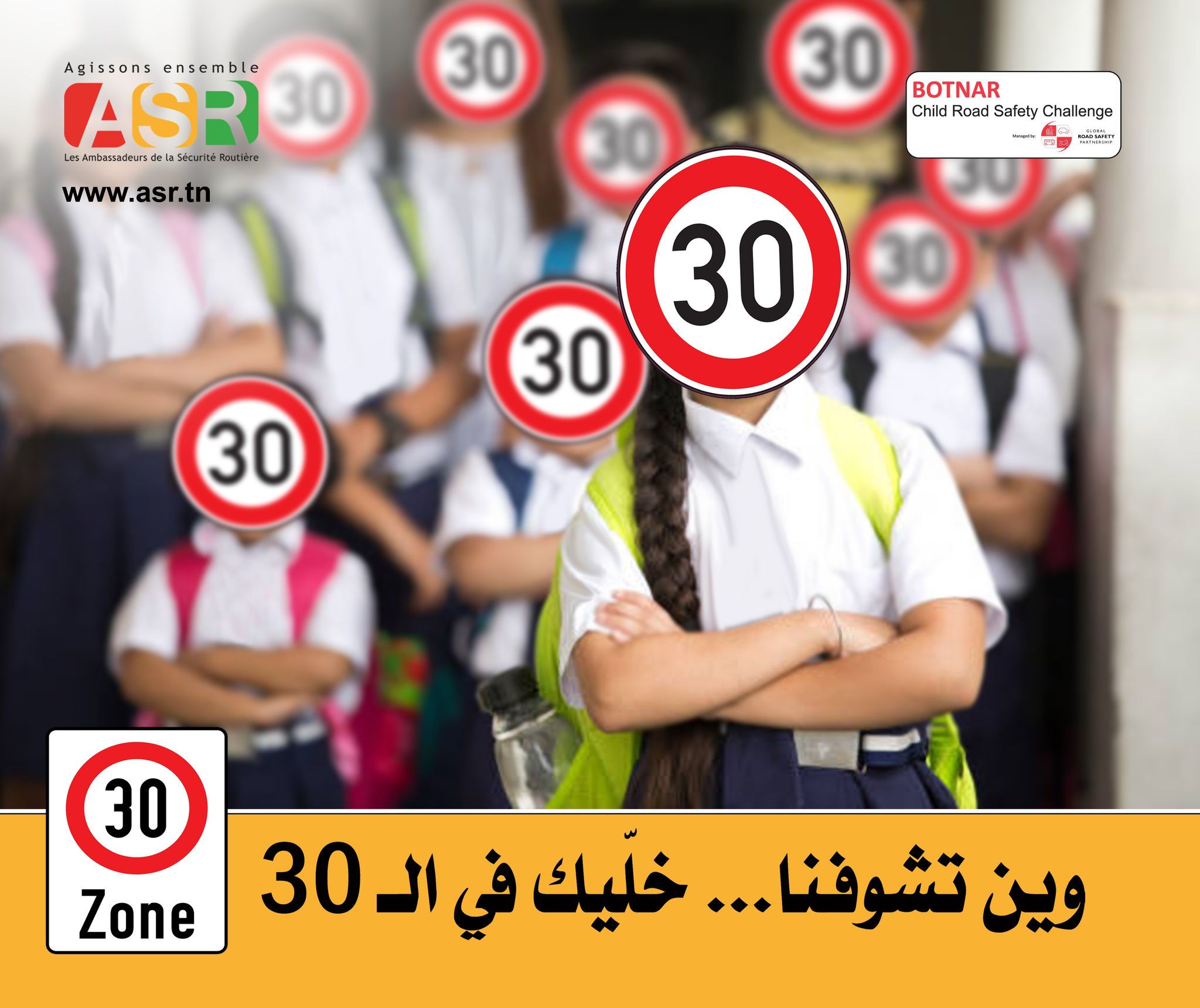 و في هذا الإطار تنظم جمعية سفراء السلامة المرورية حملة توعوية واسعة النطاق بدعم من مؤسسة بوتنار (Botnar) الخيرية تحت شعار : "ويـــــــــــن تشوفنا... خليـــــــــــــك في 30 كم/ الس".