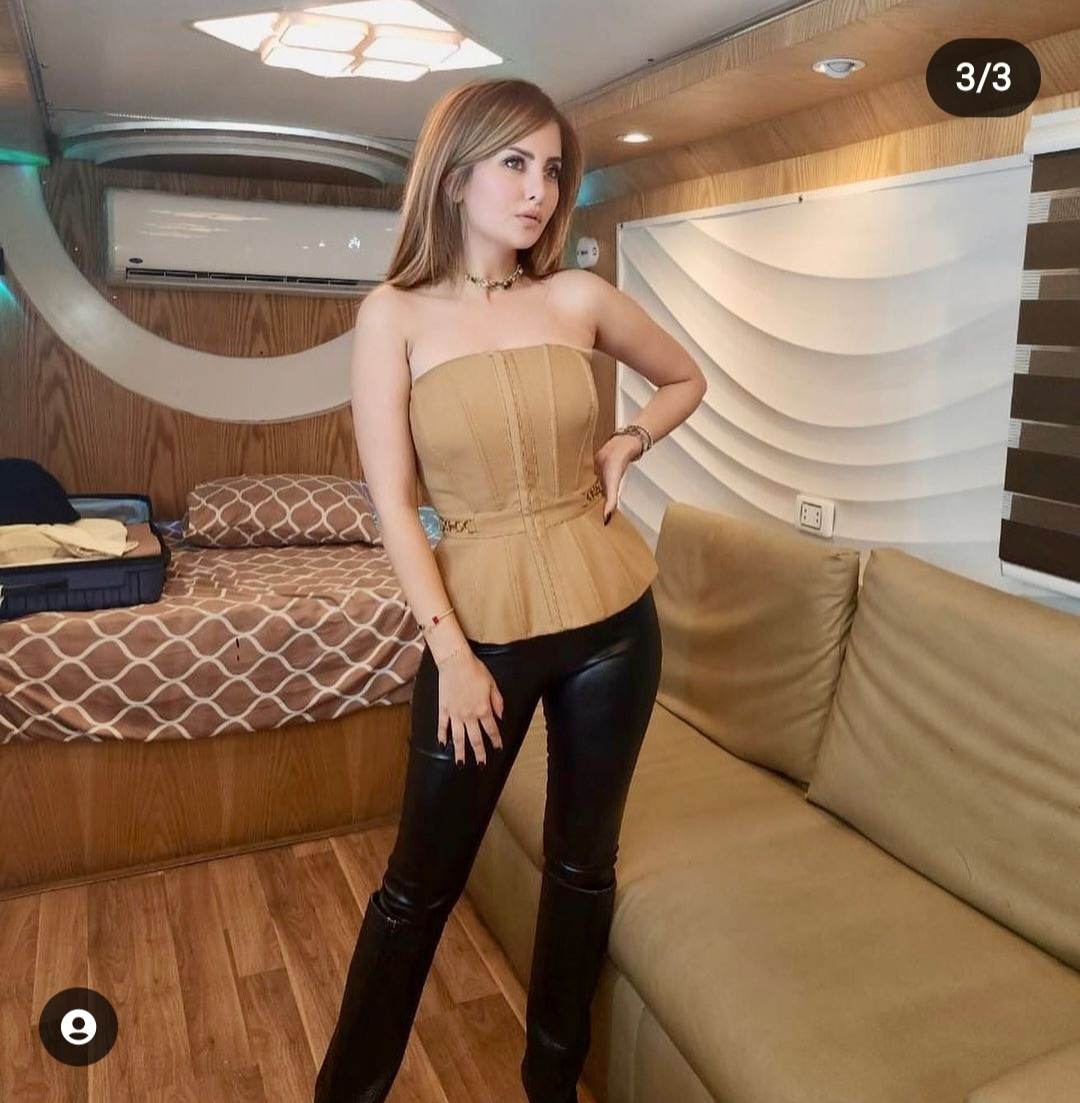 وظهرت رشا ، باطلالة أنيقة حيث ارتدت "سروال" من الجلد باللون الأسود وتوب قصيرة باللون البيج، كما تركت رشا على تسريحة شعرها منسدلا واعتمدت بعض الاكسسورات الناعمة.