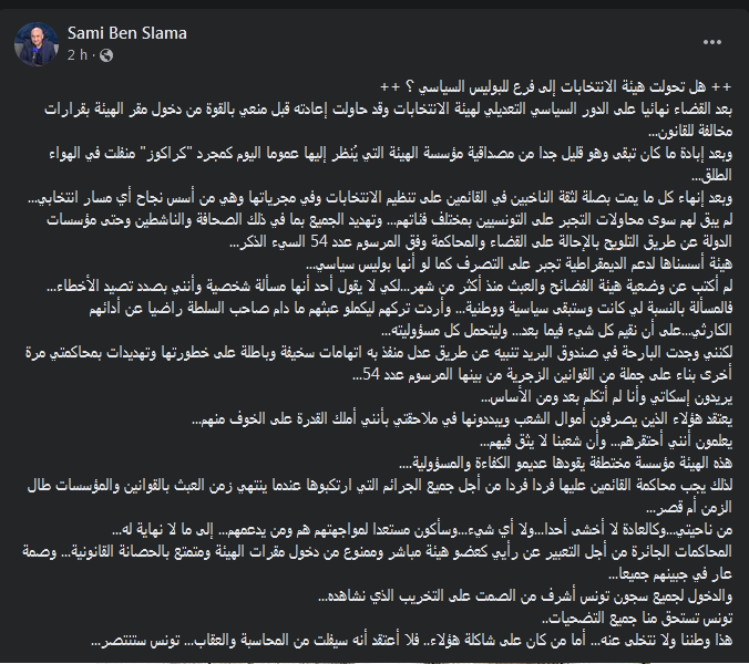 دعا العضو السابق للهيئة العليا المستقلة للانتخابات، سامي بن سلامة، إلى محاكمة الهيئة العليا المستقلة للإنتخابات .