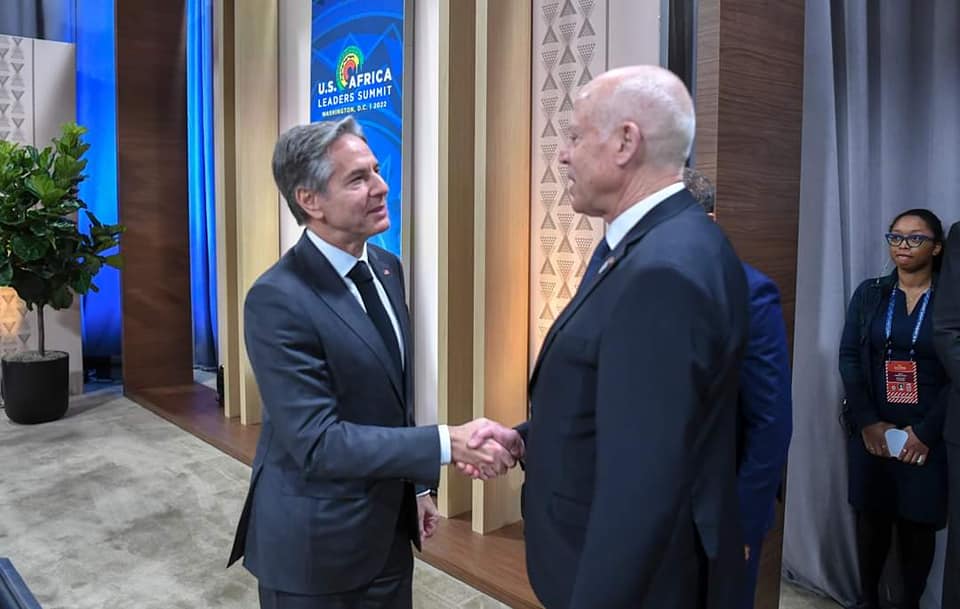 أجرى رئيس الجمهورية قيس سعيّد، يوم أمس الأربعاء 14 ديسمبر 2022 بمركز المؤتمرات بواشنطن، جلسة عمل مع السيّد أنطوني بلينكن، وزير الخارجية الأمريكي، وذلك في إطار مشاركة رئيس الدولة في قمة قادة الولايات المتحدة الأمريكية وإفريقيا.