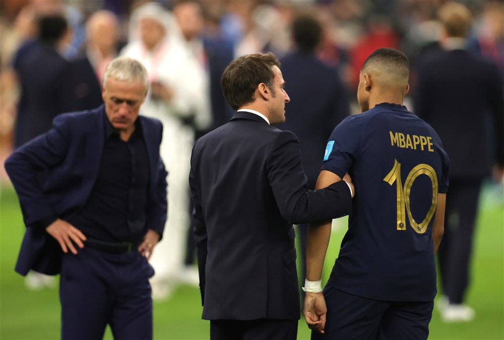 حرص الرئيس الفرنسي إيمانويل ماكرون على مواساة نجم المنتخب الفرنسي كيليان مبابي بعد الخسارة التي مني بها "الديوك" في نهائي كأس العالم قطر 2022 أمام الأرجنتين، مساء الأحد.