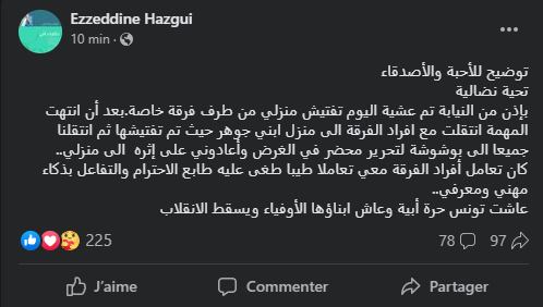 Hazgui ajoute qu’il a été bien considéré par les membres de la brigade, qui l’ont traité avec respect, intelligence et professionnalisme.
