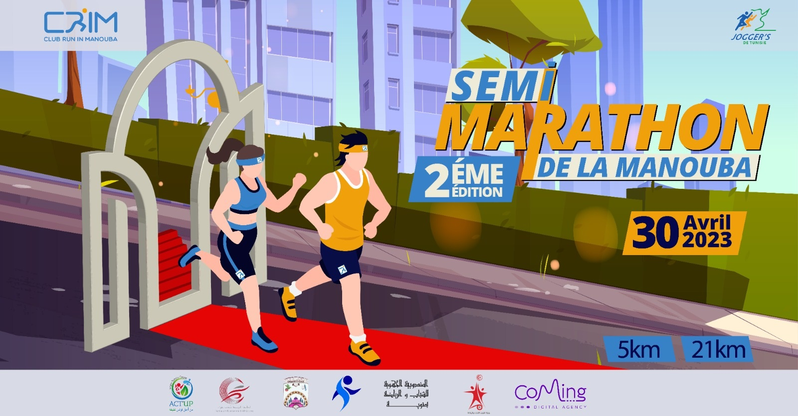 L’association sportive CLUB RUN IN MANOUBA (CRiM) organise Dimanche 30 avril 2023 le Semi-Marathon de la Manouba en collaboration avec la Mairie de la Ville.