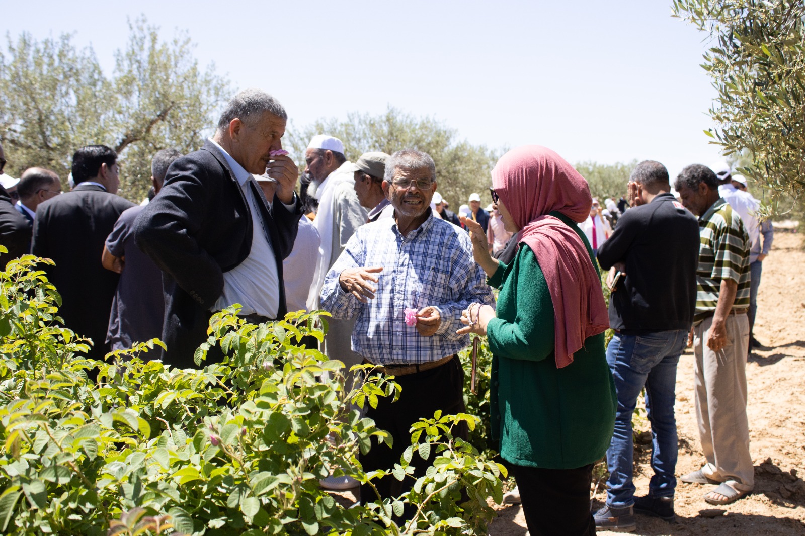 Les représentants des médias, accompagnés du gouverneur de Kairouan, des représentants des autorités régionales et nationales et des représentants du Projet PAMPAT Tunisie, ont eu aussi l’occasion de rencontrer des producteurs locaux de roses fraiches et de produits à base de rose, et ce, dans la localité de Khazazia où ils ont visité un champ de roses.