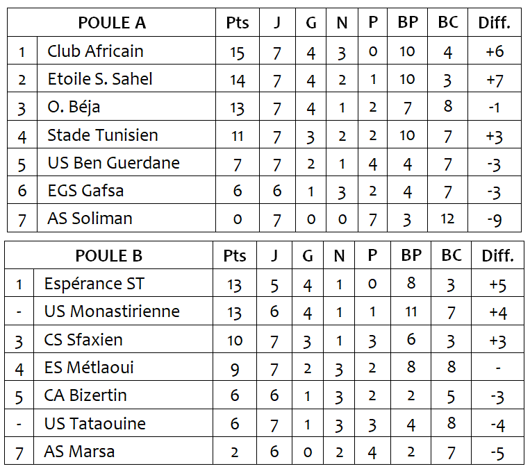 Dans le groupe B, l’ES Tunis étant engagée sur un autre front et l’US Monastirienne étant exempte, les positions sont restées inchangées en tête après le match nul 0-0 enregistré entre le CA Bizertin et le CS Sfaxien, hier et entre l’US Tataouine et l’ES Métlaoui, aujourd’hui.