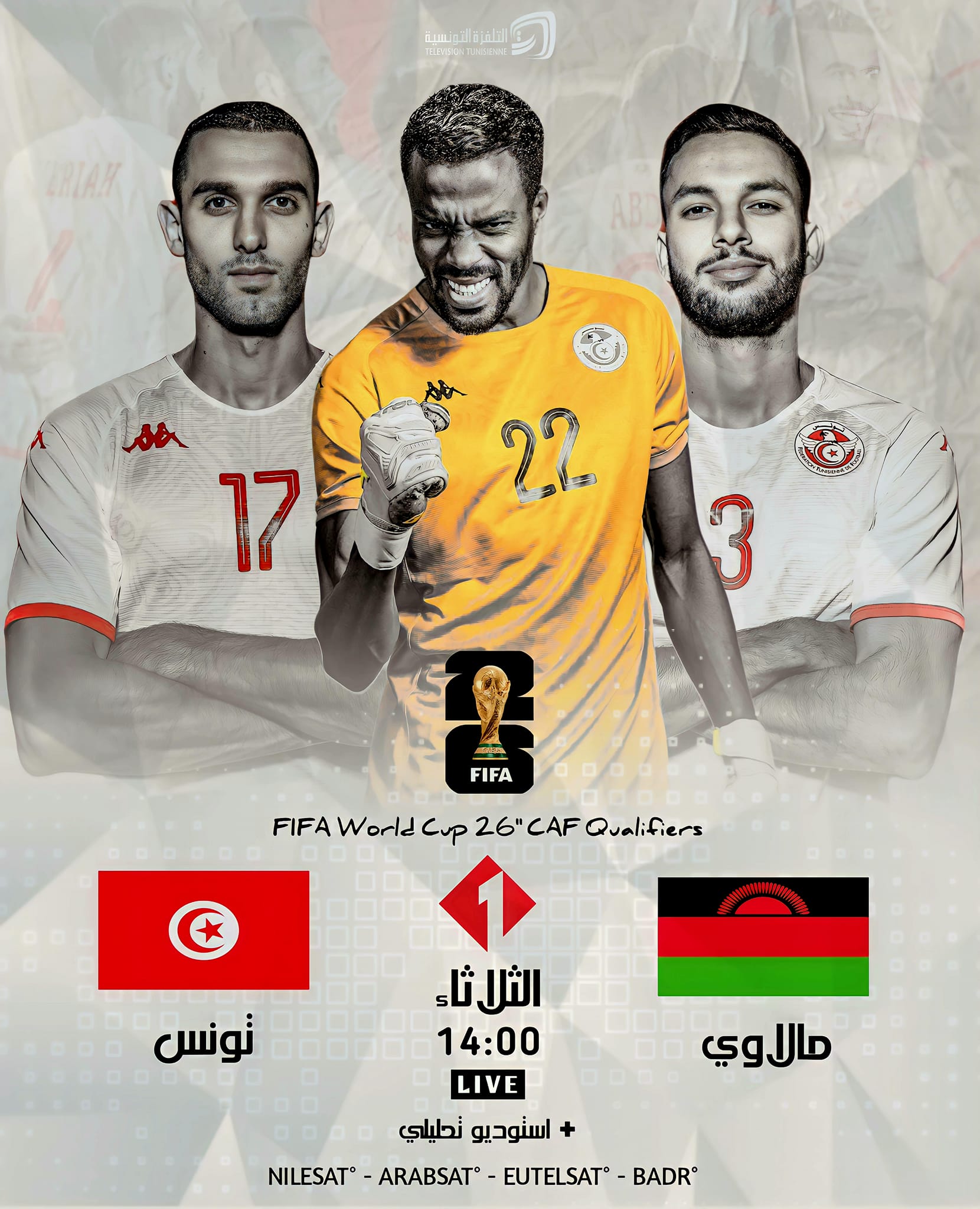 Deux chaines TV retransmettront ce mardi 21 novembre en direct la rencontre de la sélection tunisienne en qualifications de la Coupe du Monde 2026.