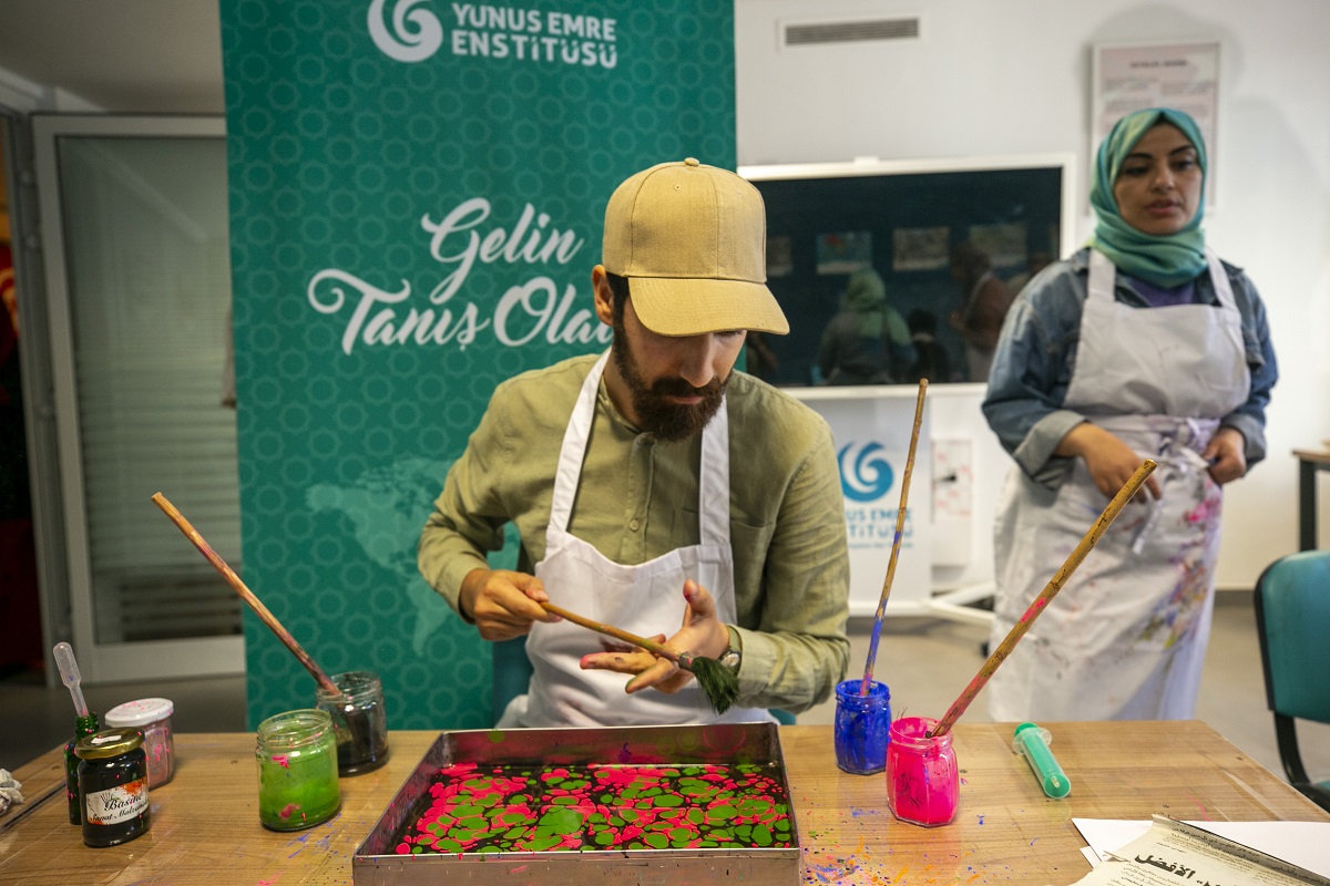Zohra Zarrouki , l’enseignante d'Ebru (l'art du marbrage) à l'Institut Yunus Emre de Tunis, est une artiste tunisienne qui a appris cette forme d'art unique à Istanbul, a exprimé ses efforts pour promouvoir l'art de l'Ebru en Tunisie, en déclarant : "Je donne des cours d'Ebru à l'Institut Yunus Emre. Nos étudiants de tous âges et professions apprennent les subtilités de l'art de l'Ebru ici."