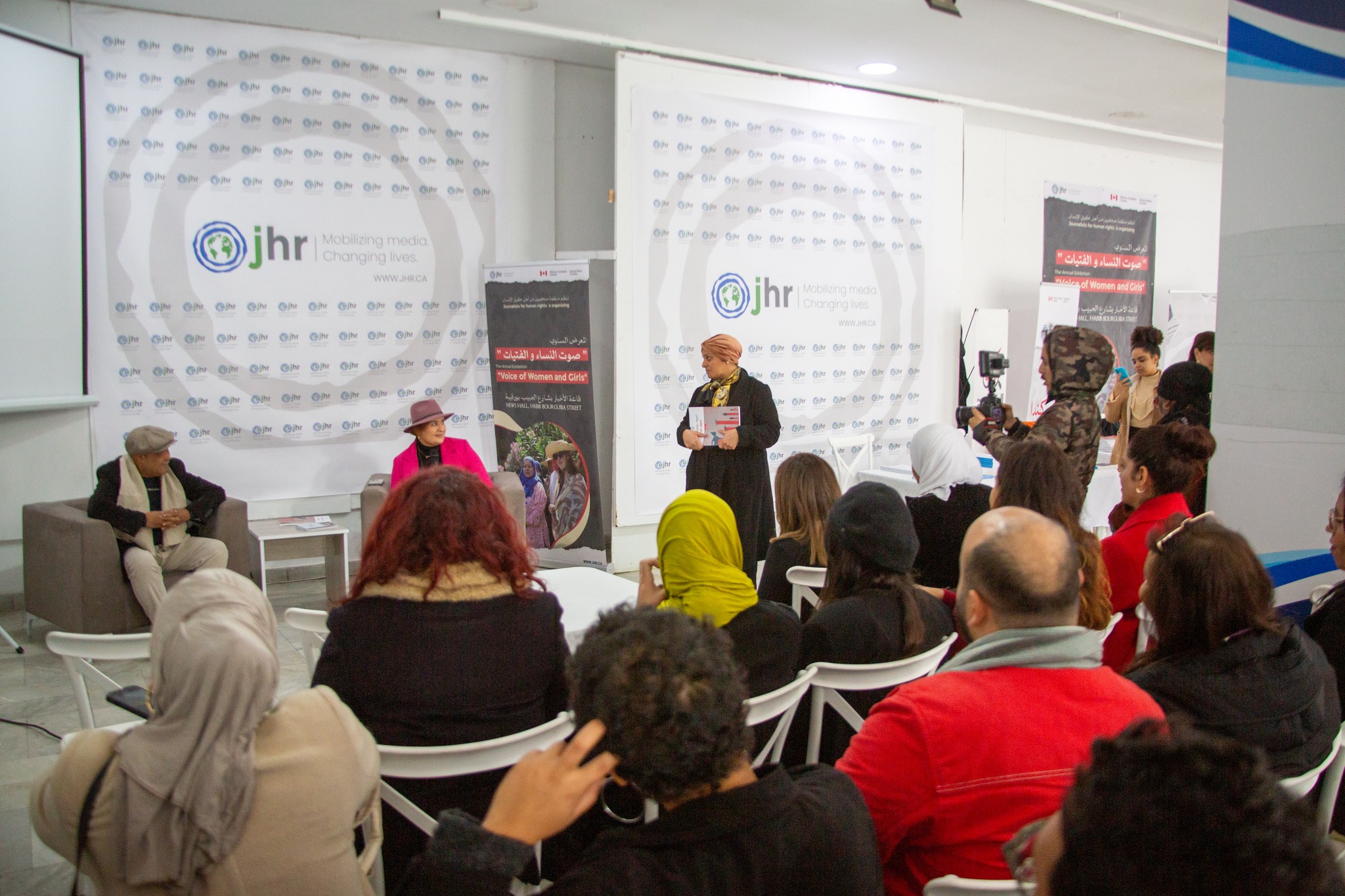 Dans le cadre des 16 jours d'activisme contre les violences faites aux femmes et en marge de la Journée internationale des droits de l'homme fêtée le 10 décembre 2023, le Bureau tunisien de l’ONG canadienne « Journalistes pour les droits de l'homme » a organisé l’exposition "Voix pour les femmes et les filles", le 9 décembre 2023, à Tunis.