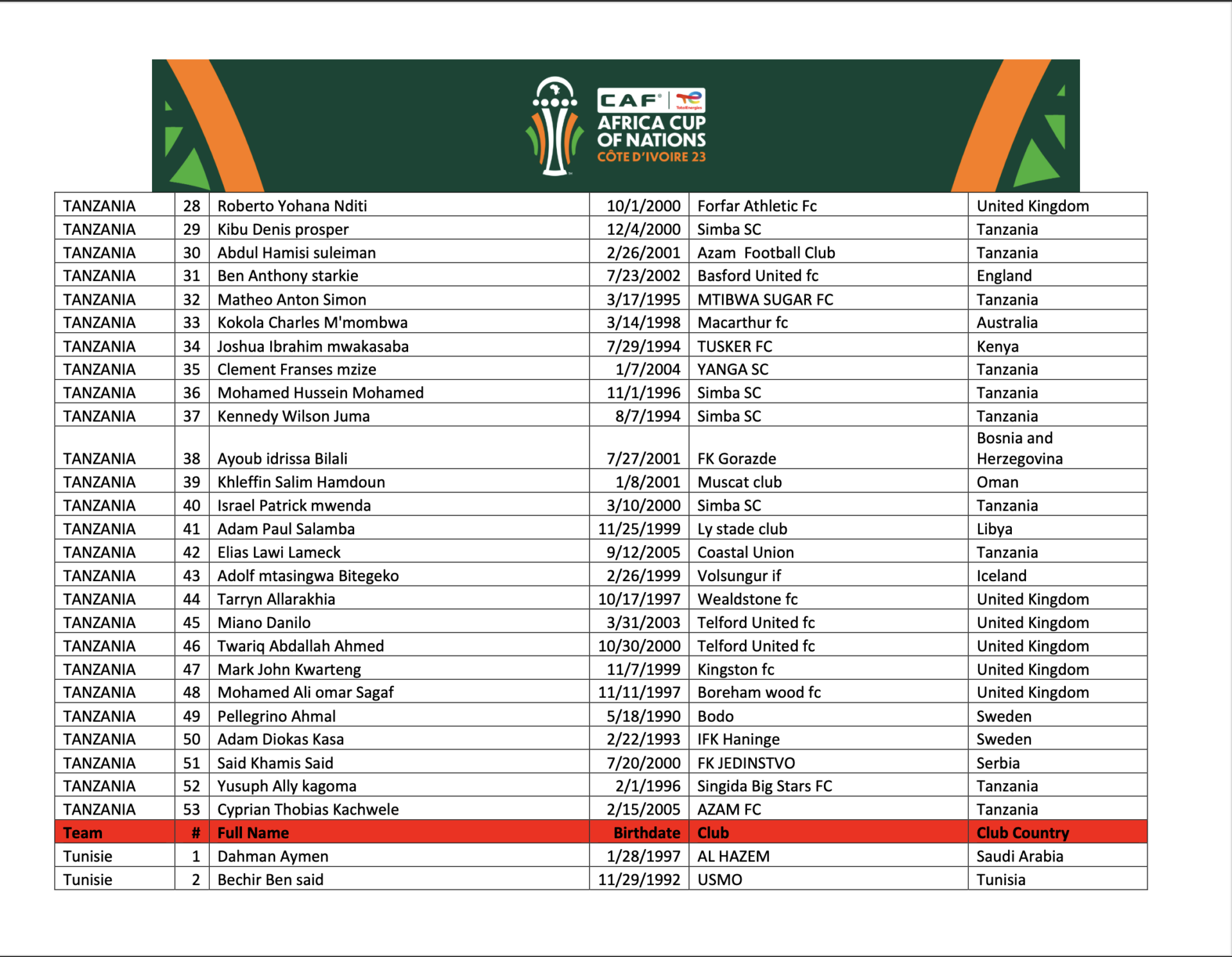 La Confédération Africaine de Football a publié les listes élargies des 24 équipes qualifiées pour la Coupe d’Afrique des nations, qui se tiendra en Côte d’Ivoire entre le 13 janvier et le 13 février 2024.