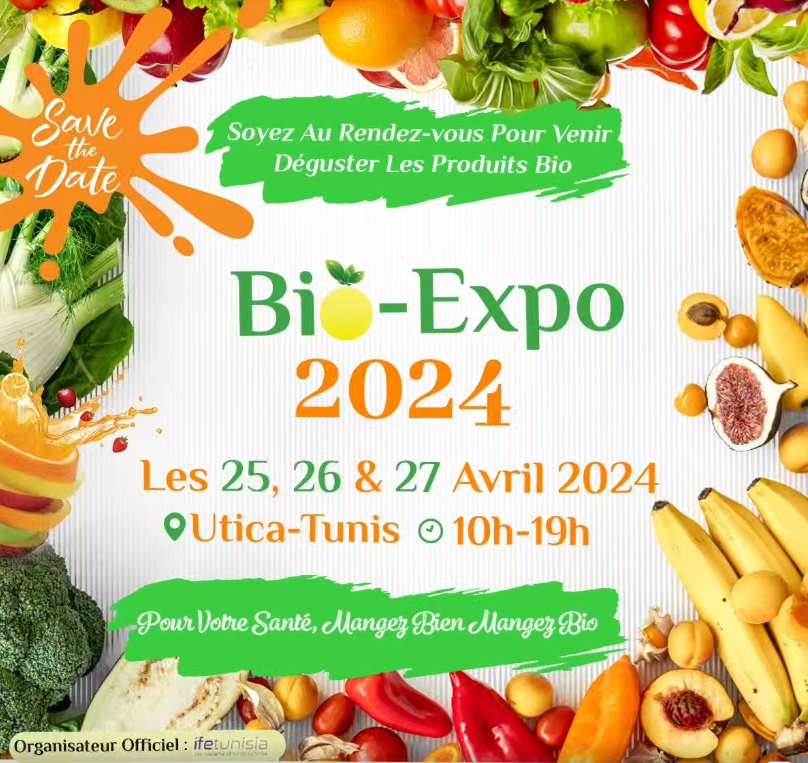 Comme tous les ans, le salon "Bio-Expo 2024 verra une participation étrangère dans le domaine de l'agriculture biologique et conventionnelle (Produits certifiés Bio et Conventionnels) : huile d'olive, dattes, miel, emballages, produits cosmétiques...