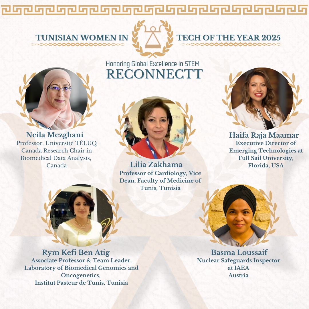 L’association tunisienne RECONNECTT, basée en France, est fière d’annoncer les cinq lauréates du prix Tunisian Women in Tech 2025, dans le cadre de sa 4ᵉ édition dédiée à la valorisation de l’excellence des femmes tunisiennes dans les domaines des sciences, technologies, ingénierie et mathématiques (STEM).