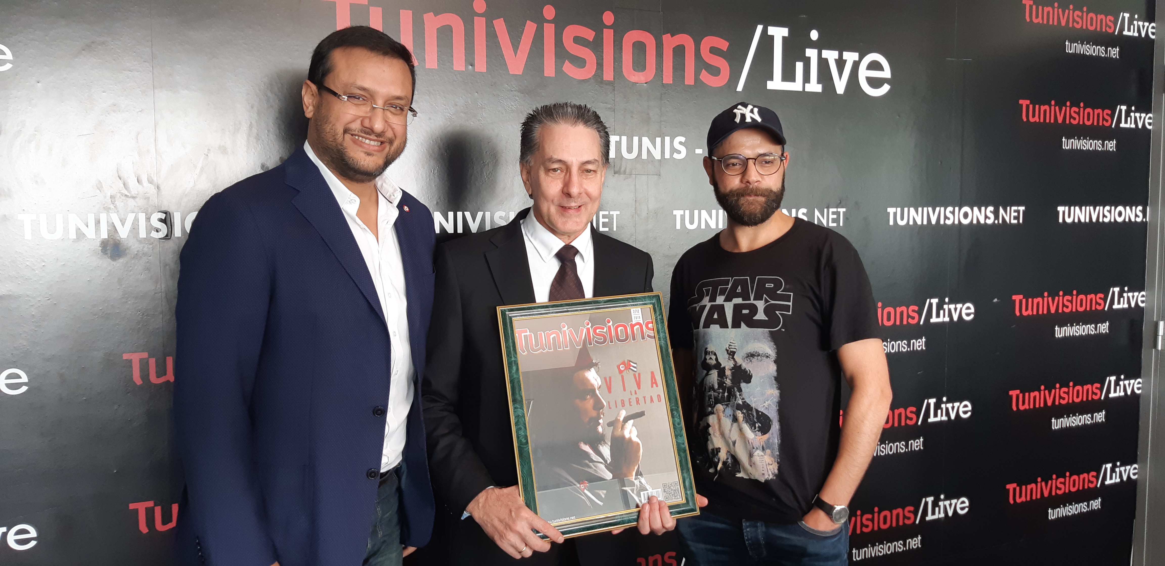 Afin d’immortaliser cette visite, le directeur artistique de Tunivisions, Zied Mejri a créé une couverture spéciale du magazine symbolisant la révolution et la liberté vers lesquelles tend la jeunesse des deux pays.