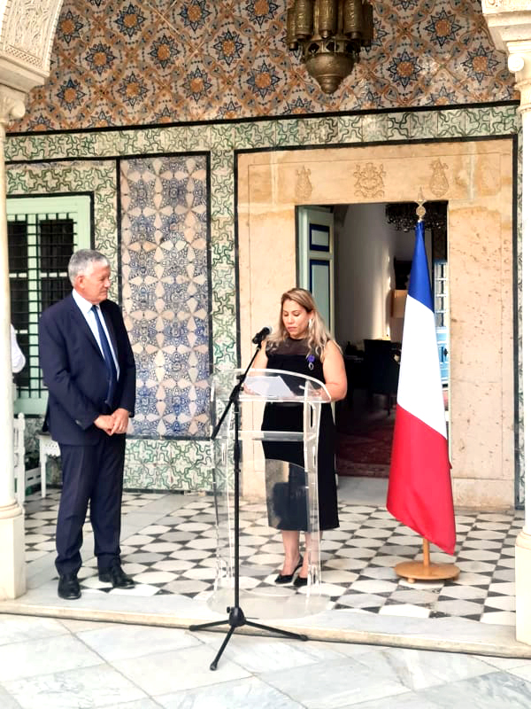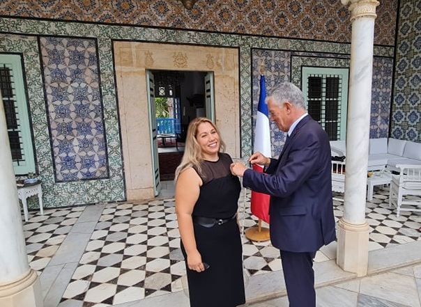 Ces insignes lui ont été décernés pour 'sa contribution active à l’expansion de la culture française ' à travers le groupe scolaire qu’elle préside, leader des établissements partenaires de l’AEFE (Agence pour l’enseignement français à l’étranger) et véritable institution éducative à Tunis et bientôt dans d’autres régions du pays.