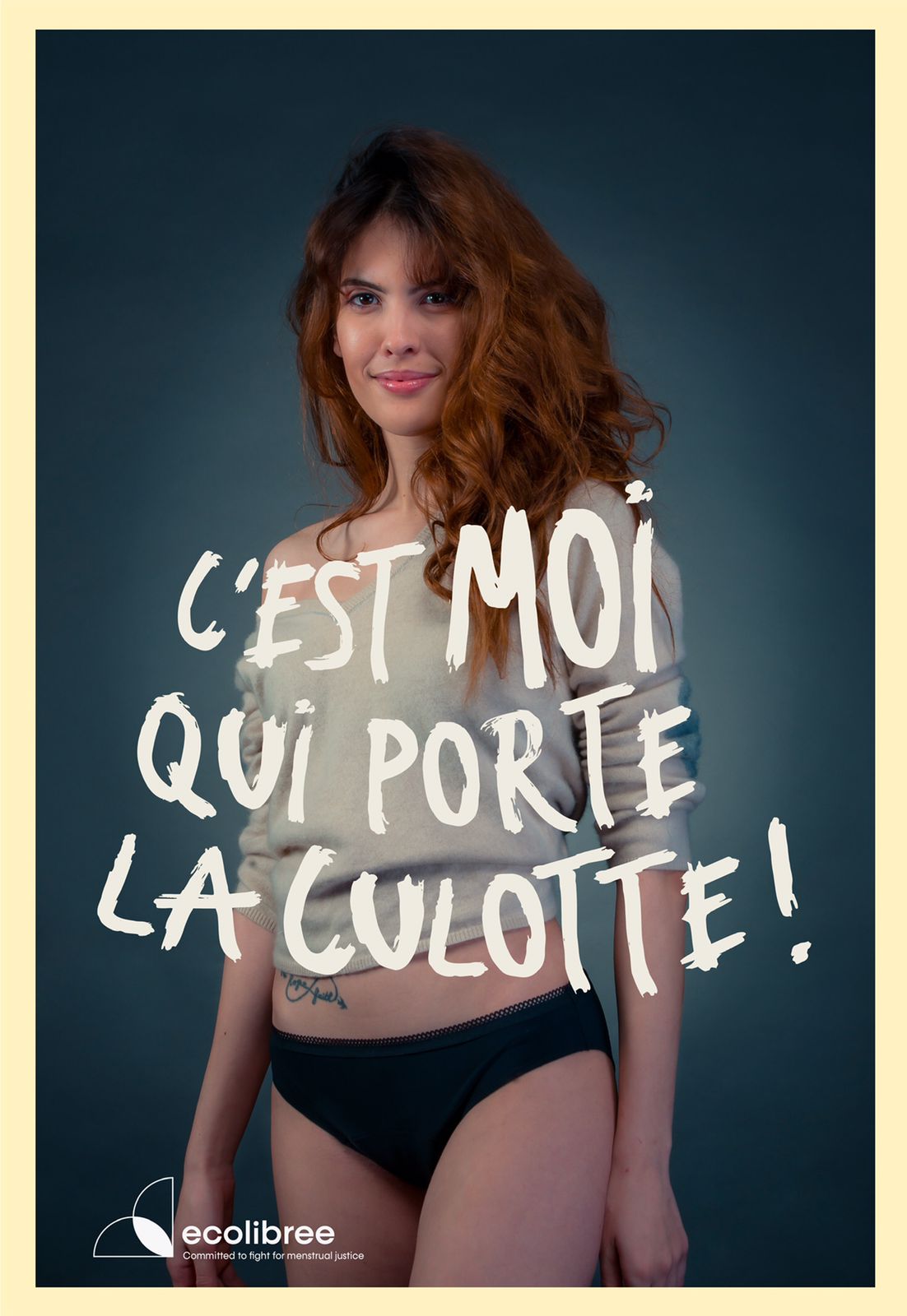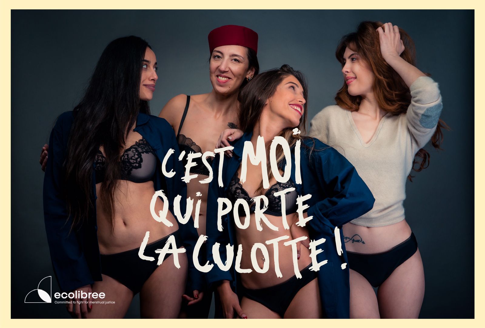Dans le cadre de leur stratégie internationale pour promouvoir la #JusticeMenstruelle, Ecolibree lancera le 17 Janvier 2022 la phase 2 de son action : une campagne de photos, diffusée sur les réseaux sociaux, sur lesquelles nous pourrons voir des courageuses femmes anonymes qui ont accepté de poser en sous vêtements pour lutter contre les tabous liés aux menstruations.