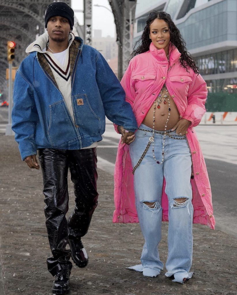 Pour annonce qu’elle attend en premier enfant d’ASAP Rocky, Rihanna a dévoilé son baby bump dans le quartier de Harlem, à New York.