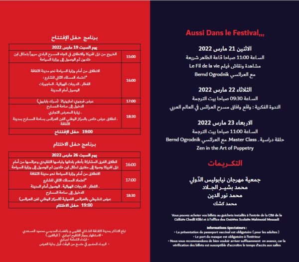 Programme complet des Journées des Arts de la Marionnette de Carthage (JAMC).