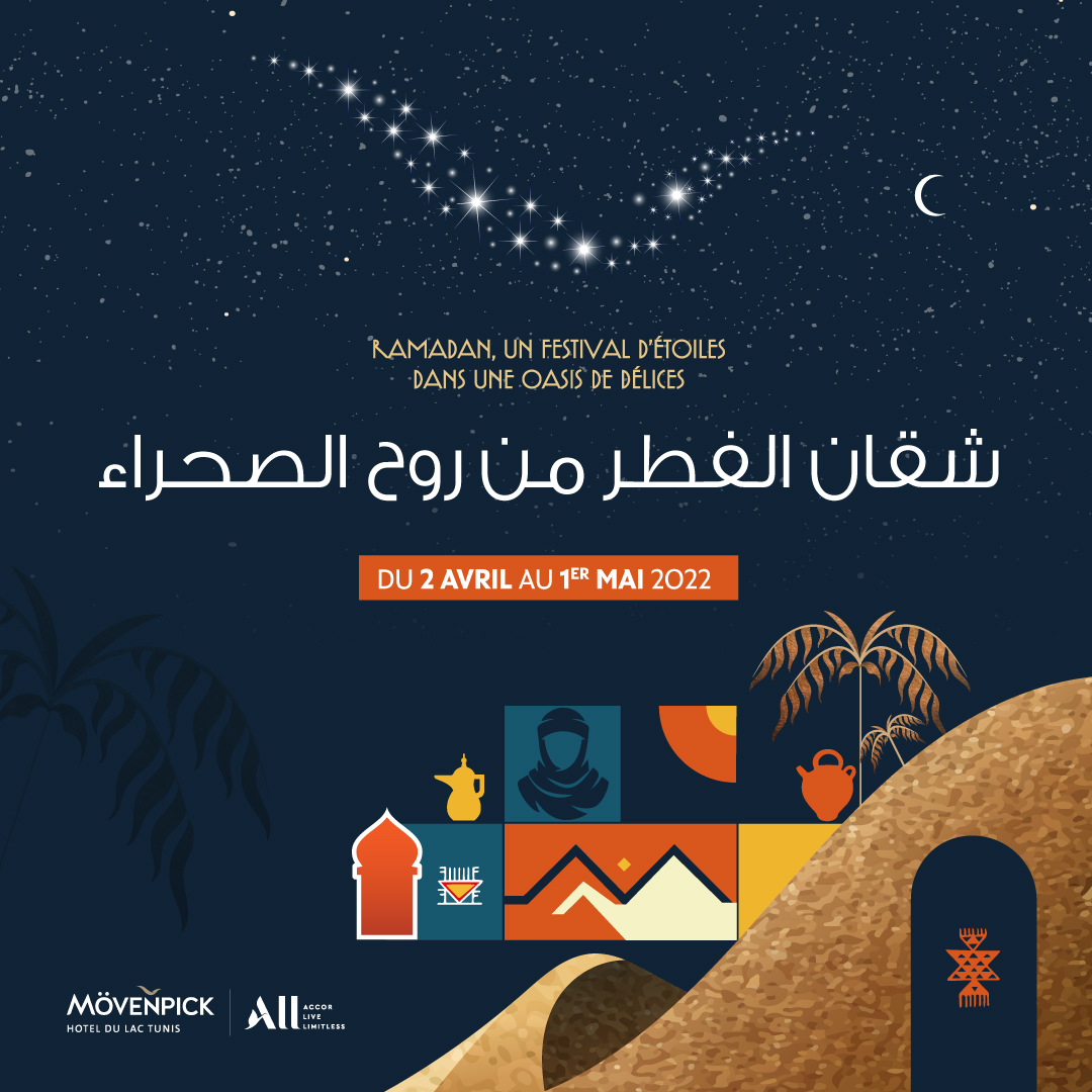 Après le succès de l’année dernière ' Ramadan Zmen ', le Mövenpick Hotel du Lac Tunis vous réserve, cette année, de nouvelles surprises pour un mois de Ramadan unique avec la mise en avant du patrimoine culinaire et artistique du Sud tunisien.