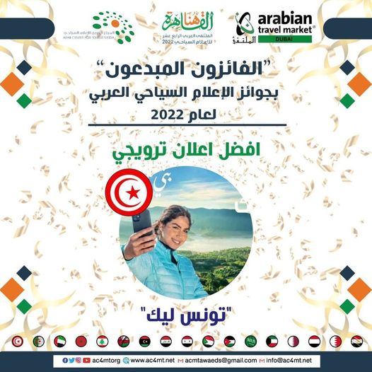 L’Office National du Tourisme Tunisien (ONTT) vient de gagner le prix du meilleur spot de promotion touristique dans le cadre de sa participation aux oscars des meilleurs médias touristiques arabes, un concours organisé par le Centre Arabe des Médias Touristiques, du 9 au 12 mai courant, à Dubai.