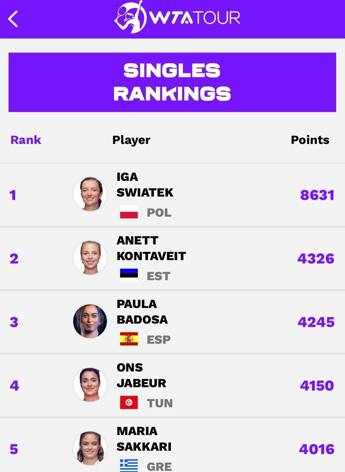 Totalisant 4 150 points après son élimination au premier tour du tournoi de Roland Garros, Jabeur a pu profiter de la chute inattendue des favorites lors du même tournoi de Grand Chelem pour intégrer ainsi ce Top 5.