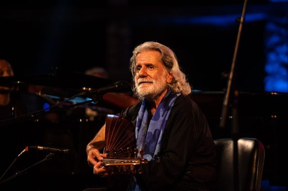 Au Oud et au chant, Marcel Khalifé conquis son public avec sa présence magnétique, l’art de manier son instrument musical, et sa voix qui emporte le public dans l’enceinte du théâtre de Hammamet.