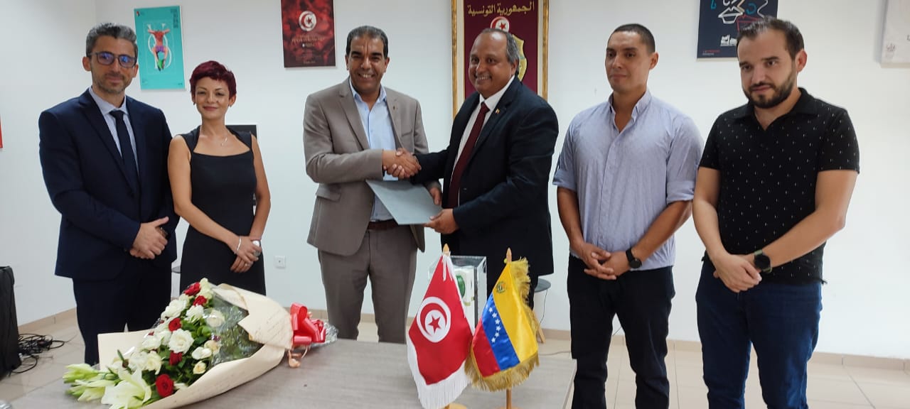 Au siège de l'Opéra de Tunis, après avoir reçu le message télématique du directeur d'El Sistema, M. Eduardo Méndez, l'accord a été signé par la partie tunisienne, par le directeur général de l'Opéra, M. Mohamed Hedi Jouini, qui, accompagné de son équipe, a prononcé un mot de remerciement et exprimé au nom de la ministre tunisienne de la Culture, Hayet Guettat, le plaisir d'avancer dans la coopération culturelle avec le Venezuela.