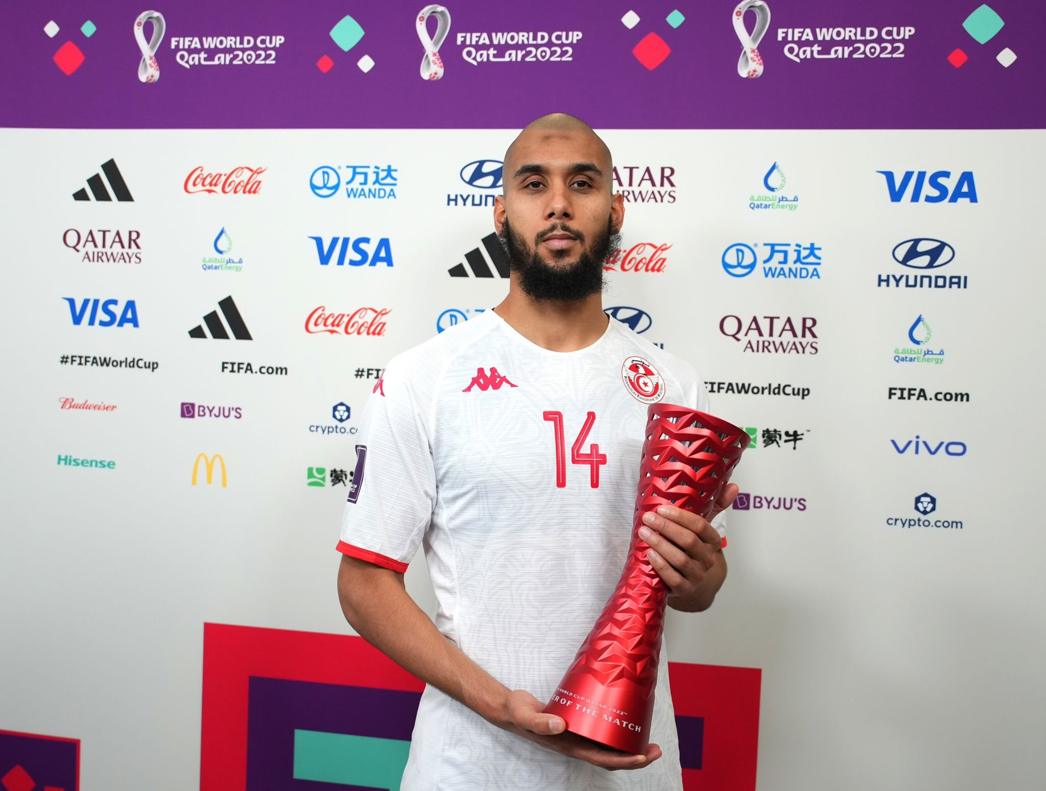 Le joueur a été monumental dès le début de la rencontre et jusqu’au moment de son remplacement par Sassi à 15 minutes de la fin. Le dernier joueur tunisien à avoir gagné ce trophée symbolique était Fakhreddine Ben Youssef (Tunisie-Panama en Russie 2018). Avant lui, Zied Jaziri en Allemagne 2006, après le match contre l’Arabie Saoudite (3/3) et Raouf Bouzaiene (Tunisie-Belgique, au Japon en 2002).